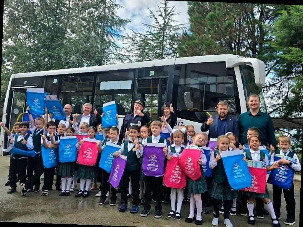 Для наглядного изучения правил поведения в общественном транспорте был привезен автобус на территорию школы. Дети повторили ПДД и получили полезные подарки от Национальной транспортной ассоциации — школьное расписание и сувениры.