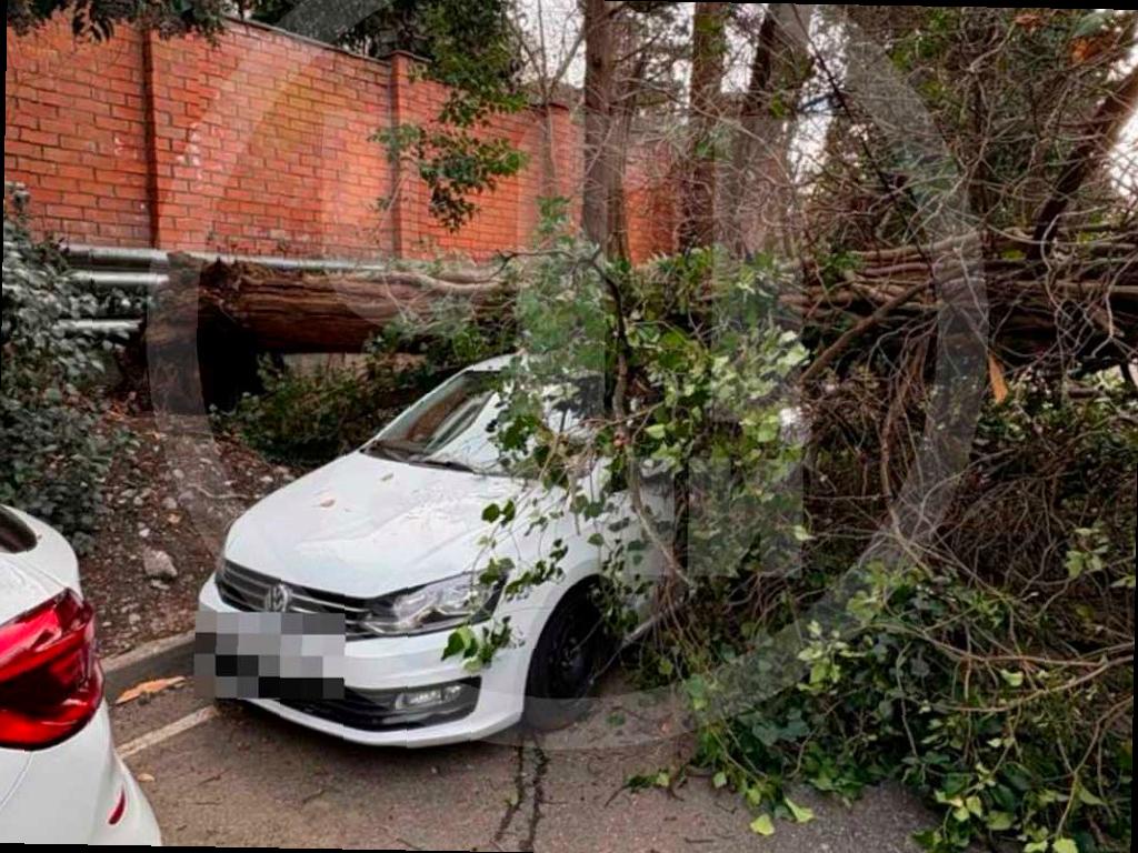 На фото, опубликованном в телеграм-канале «ЧП Сочи», видно, как кипарис лежит на дороге, а ущерб от падения виден на автомобиле и заборе.